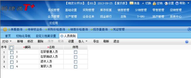 3、点击“新增”增加人员类别下的详细档案,包括在职普通人员、在职高级人员、退休人员、离职人员。